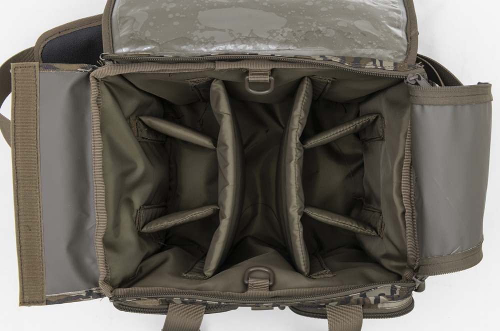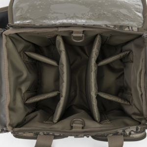 Die Floating Deluxe Blind Bag ist mit einer Reihe nützlicher Funktionen ausgestattet, darunter herausnehmbare Inneneinteilungen, ein durchsichtiges Fach für Wertsachen, in dem Sie Ihr Handy und anderes Zubehör aufbewahren können, und ein fester Sonnenbrillenhalter. Das Hauptfach besteht aus nicht absorbierendem, geschlossenzelligem Schaumstoff und ist mit einer wasserdichten Membran versiegelt, die Ihre Ausrüstung auch im Wasser oder Schlamm trocken hält. Die Tasche verfügt außerdem über zahlreiche Taschen für zahlreiche Aufbewahrungsmöglichkeiten und eine Thermosflaschen- und Jackentasche an der Oberseite. Die Floating Deluxe Blind Bag verfügt außerdem über einen gepolsterten Tragegriff und einen Schultergurt, so dass Sie Ihre Ausrüstung ohne Stress transportieren können.