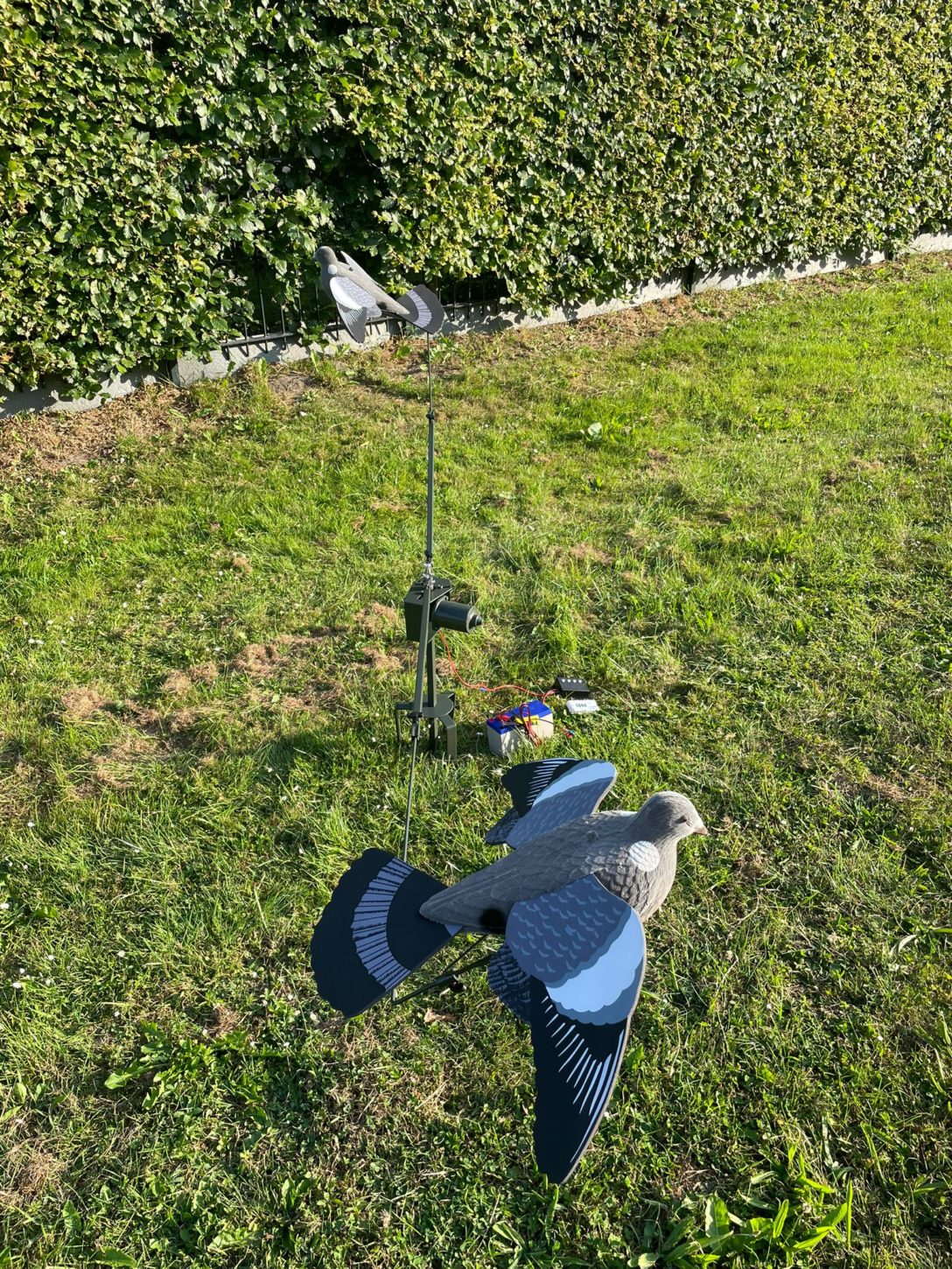Auf dem Birdcaster können sowohl Lockvögel als auch geschossene Krähen/Tauben als Köder verwendet werden.