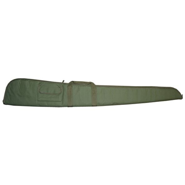 Tasche grünes Polyester 600D mit Schwammfutter. Größe 20x132cm inklusive Munitionstaschen, Griffe und Schulterriemen. Mit doppeltem Reißverschluss.